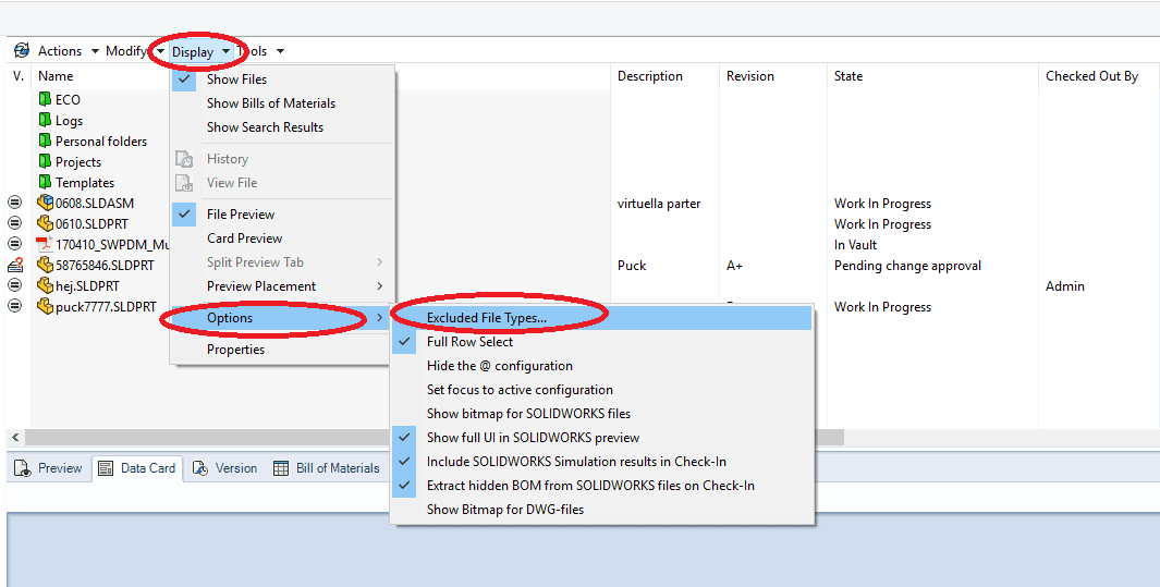 Ibland finns det filtyper som man inte vill ska visas i preview fliken i PDM utforskaren.