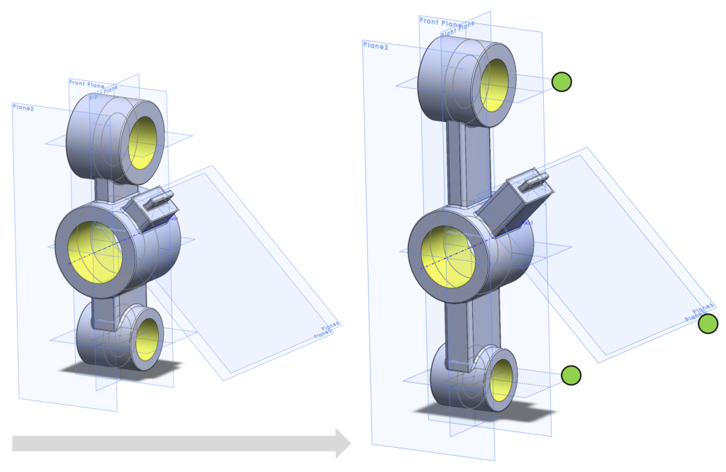 Att koppla sin geometri till referensplan kan ge fördelar om man enkelt vill kunna ändra sin geometri och få bra kontroll på skisser eller 3D geometri. Kanske flera skisser eller geometrier kan kopplas till ett och samma plan så att en förflyttning av planet tar med sig allt på en gång.