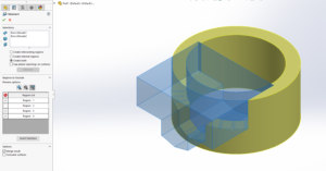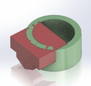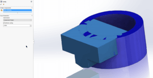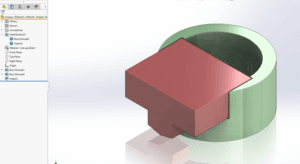 - Ett alternativ där man kan skapa en utskärning motsvarande den ena kroppen och samtidigt behålla den ”skärande” kroppen är genom att använda Indent (Insert>Features>Indent). Denna metod fungerar både i multibodys och assemblys. Med detta verktyg kan man även lägga till spelrum mellan parterna.