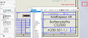 Titelblockets teckensnitt i underlagsformatet (Sheet format) ställs in manuellt och kan sparas som en Sheet Format-mall.