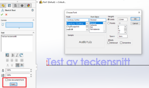 - Är det ett teckensnitt för måttsättning (Dimensions) i en Part eller Sammanställning som tex Arial Narrow duger det oftast att låta SOLIDWORKS välja ett nytt teckensnitt automatiskt eftersom det inte kommer synas på en ritning,