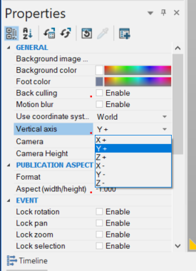 Vad beror detta på frågar vi oss. Om vi tittar i Properties-rutan så ser vi att Vertical axis är Y+. Modellen vi läste in har sin vertikala axel i z-led. Hur åtgärdar vi det?