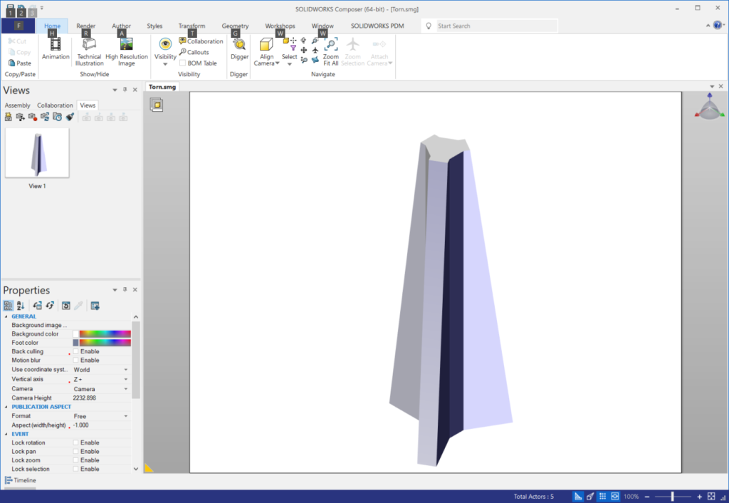 Om vi får en modell från någon annan och tar in den i SOLIDWORKS Composer, så märker vi att den inte ligger som vi vill. I exemplet på bilden så pekar tornet inte uppåt efter att vi läst in den i SOLIDWORKS Composer.
