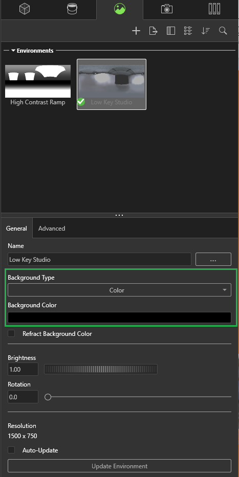 Det första vi kan göra är att gå till våra scen-inställningar och där ställa om vår bakgrund till en solid färg, och sätta den till svart. Detta kommer att påverka färgen på eventuella markskuggor.