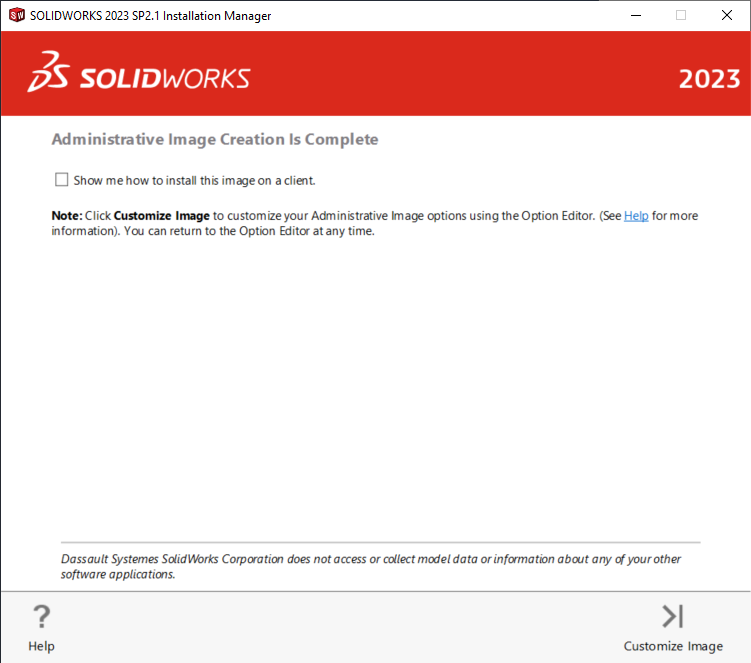 När skapandet av Admin Imagen är klar får vi chansen att anpassa den när vi klickar på Customize Image..