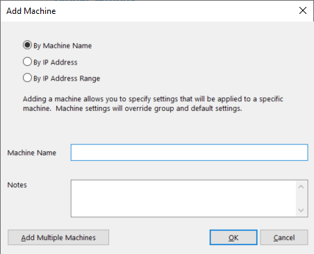 Här kan vi skriva in datornamnet och sedan klicka på OK. Vill vi lägga till flera datorer klickar vi på knappen Add Multiple Machines.