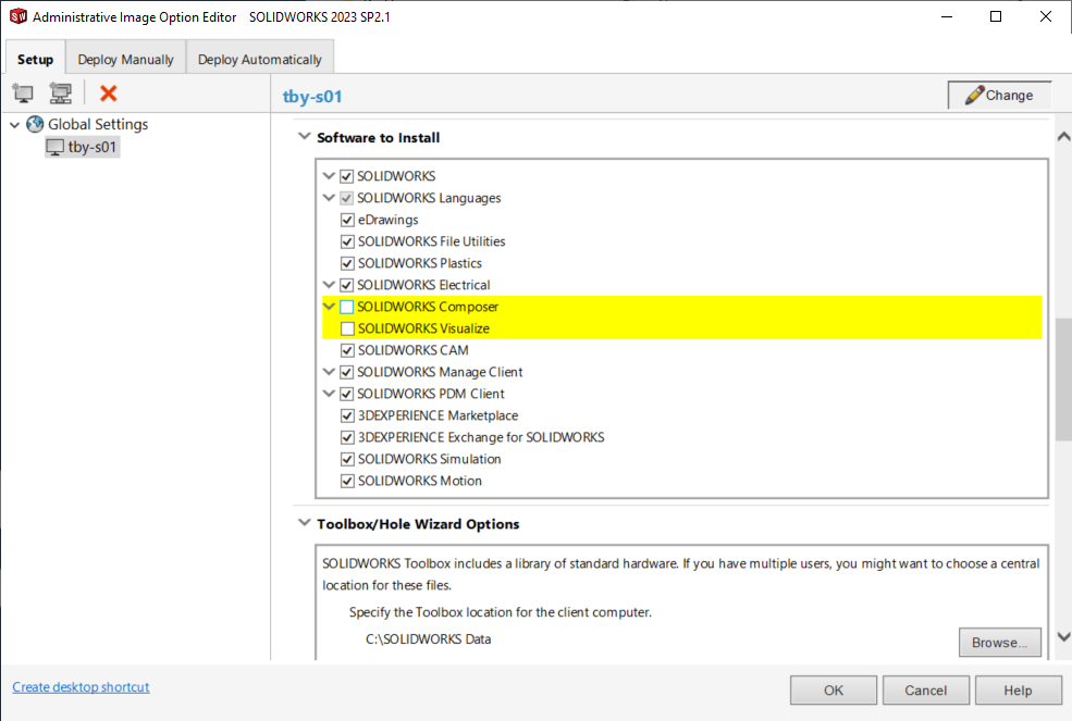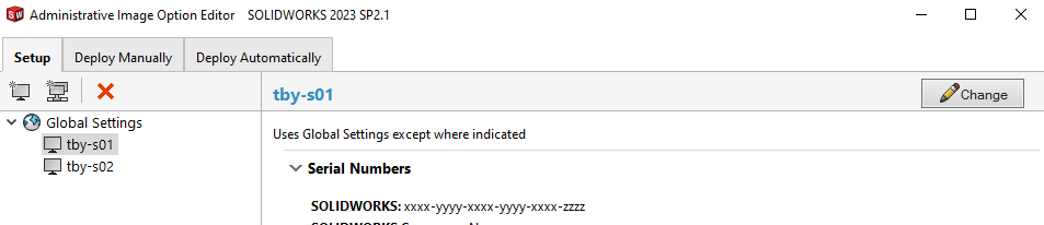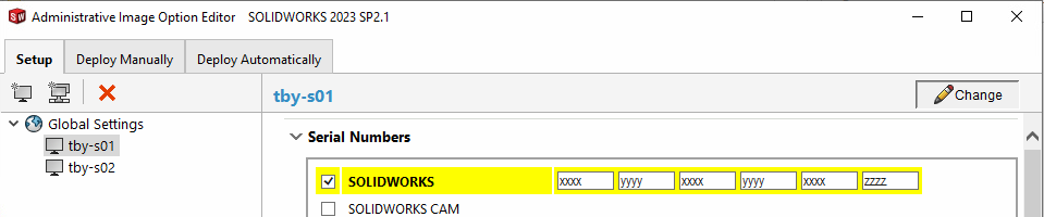 Om vi har fasta SOLIDWORKS serienummer så behöver vi tilldela dem till specifika datorer. Lägg till datorerna enligt exemplet ovan, exemplet ovan så ändra vi bara vilka programvaror som ska installeras.