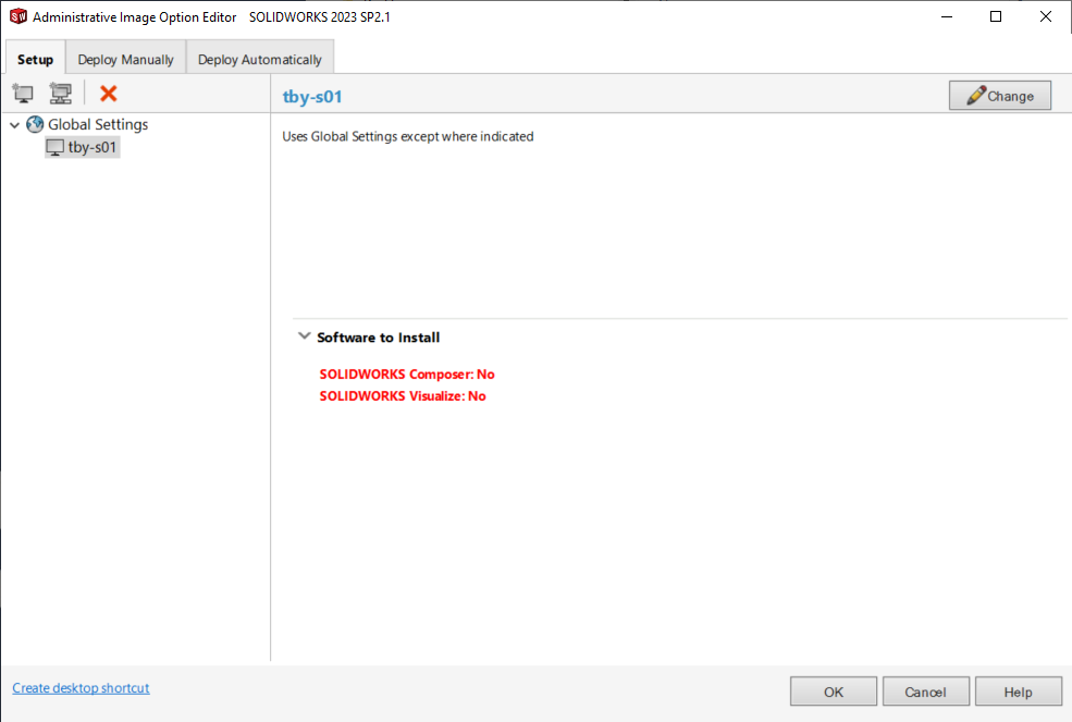 Då ser vi att den datorn använder de globala inställningarna förutom Composer och Visualize som syns under Software to Install.