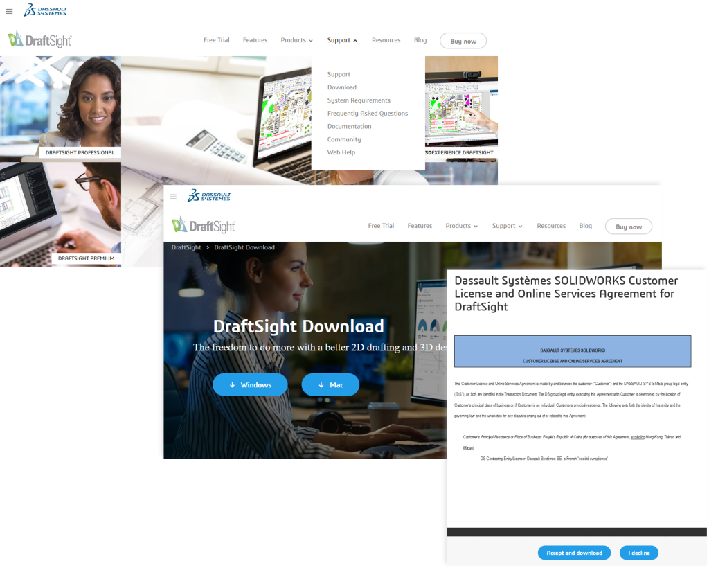 Vi börjar med att gå in på DraftSights hemsida: https://www.draftsight.com