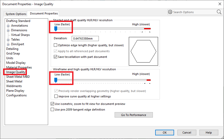 Sätt Shaded och Wireframe till lägsta kvalitet.