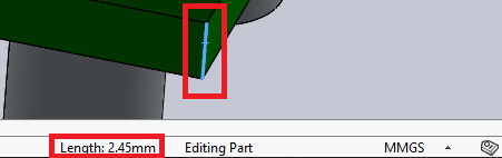 - Klicka på plattans kantlinje och läs av tjockleken på kretskortet (nere till höger i SOLIDWORKS-fönstret).