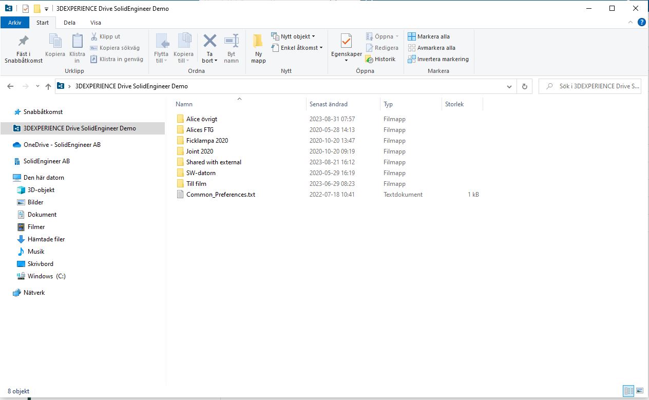 - Din 3DDrive finns nu tillgänglig i Utforskaren och är synkad till din 3DEXPERIENCE-plattform.