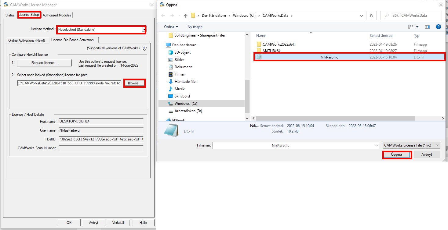 Läsa in en ny licensfil i CAMWorks