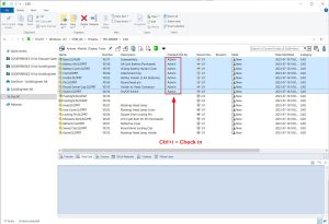 Markera filer och håll ner ”Ctrl” knappen och tryck ”O” för att checka ut.