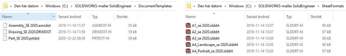 SOLIDWORKS har standardmallar i sin filstruktur bland annat i: