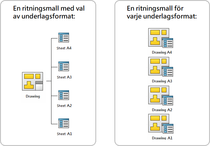 - Alternativ 2 för en Drawing template med flera Sheet Formats: