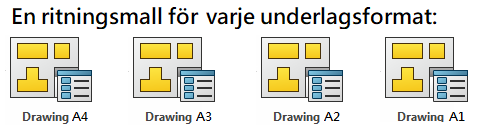- Alternativ 1 för att skapa flera Drawing templates med var sitt Sheet Format (ritningsmall med en arkstorlek):