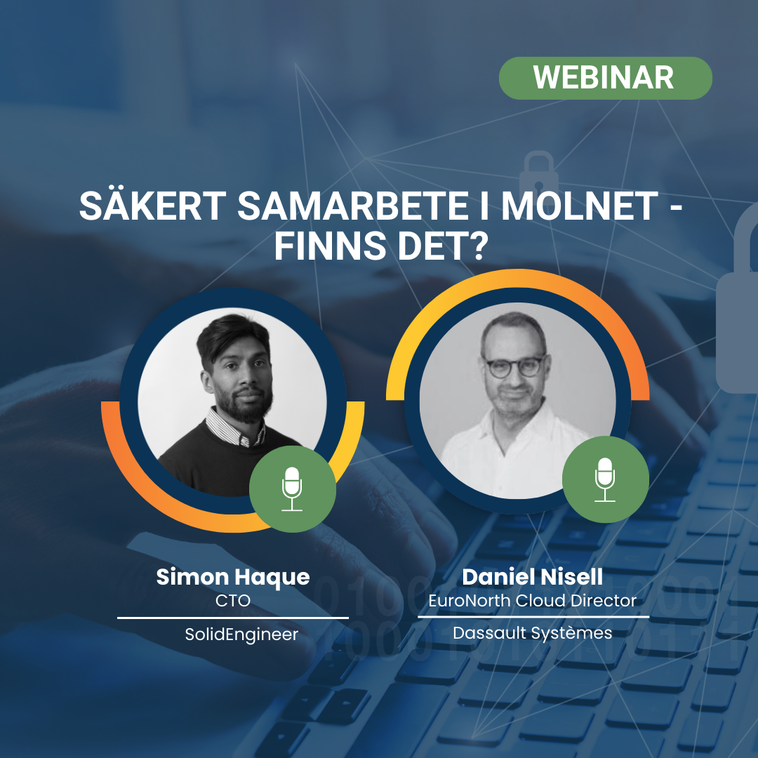 Är det säkert att arbeta på 3DEXPERIENCE-plattformen?Upptäck vad 3DEXPERIENCE kan göra för dig och få klarhet kring hur det är med säkerhet i ”molnet”. Under detta webinar kommer vi att utforska hur 3DEXPERIENCE är ur säkerhetsaspekterna, hur data lagras och vem som ansvarar för dess säkerhet. Under webinaret besvarar vi på en del tittarfrågor – och har du fler frågor är det bara att kontakta oss. Vi arbetar för att skapa en djupare förståelse för hur du säkert kan samarbeta i 3DEXPERIENCE-plattformen. Ta del av allt du behöver veta för att arbeta tryggt och effektivt!