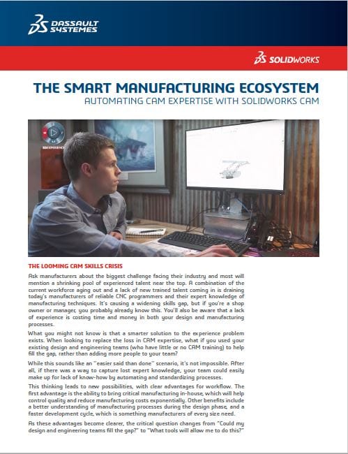 SOLIDWORKS CAM utnyttjar hela bredden av SOLIDWORKS 3D CAD innehåll för att snabba på produktutvecklingen och samtidigt minimera felaktiga, tidskrävande, ständigt återkommande manuella steg i utvecklingsprocessen. Kunskapsbaserad bearbetningsteknologi är grunden för effektivare programmering i CNC, systemet ”lär sig” under programmeringen vilket frigör tid att fokusera på de kritiska områdena i produktutvecklingsarbetet.