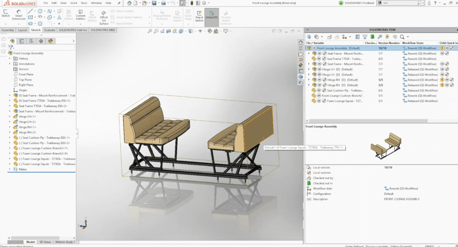 SOLIDWORKS PDM gör det möjligt för alla som är involverade i ett projekt att dela och kommunicera information och samarbeta enkelt, samtidigt som det sparas och hanteras på ett säkert sätt med automatiska versioner och säker kontrollerad revisionshantering. De flexibla och anpassningsbara arbetsflödesfunktionerna ger organisationen möjlighet att automatisera och kontrollera processerna för produktutvecklingen. SOLIDWORKS PDM är fullt integrerad i utforskaren, vilket gör steget lätt för den vana windowsanvändaren.